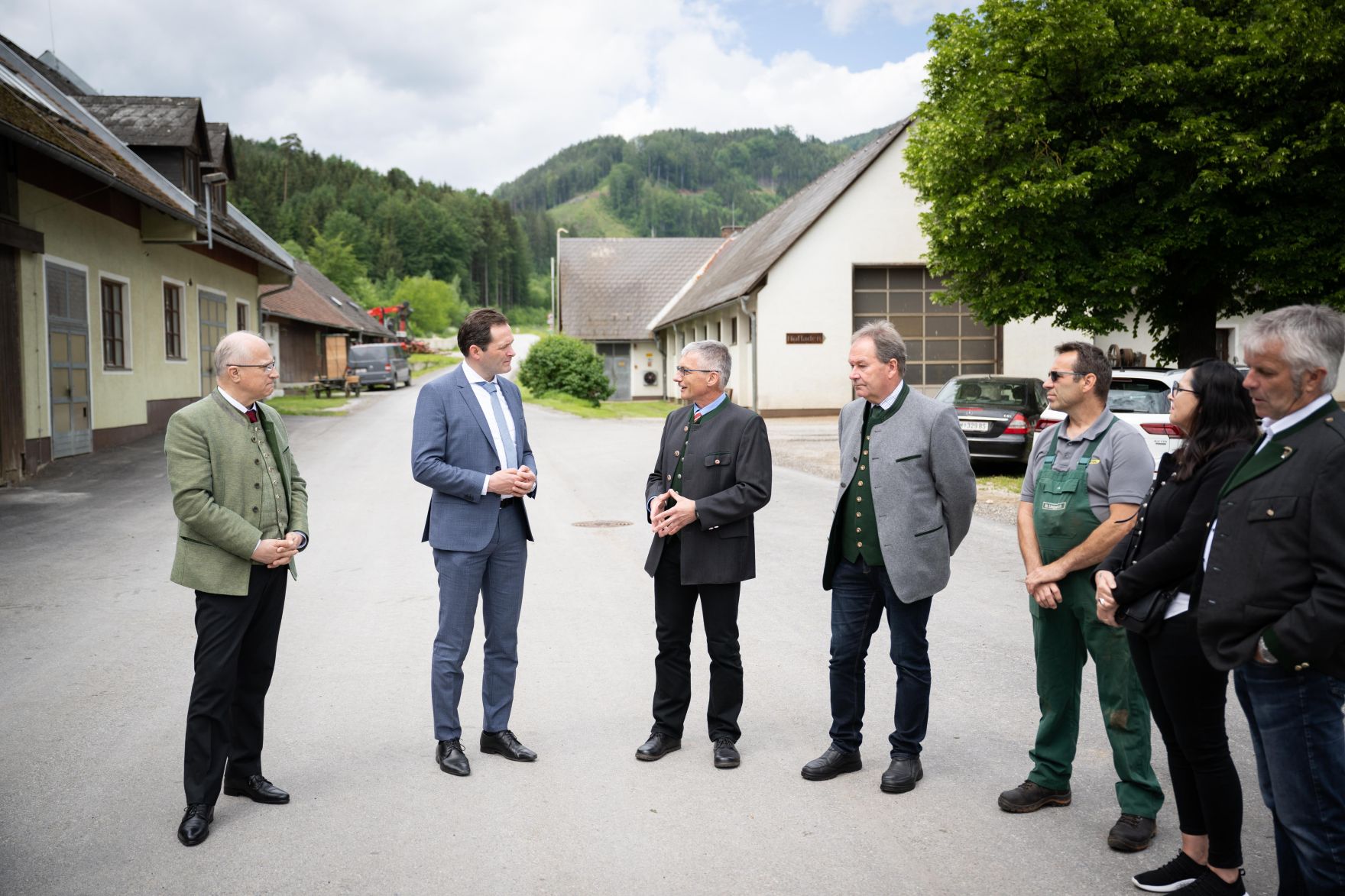 Bildtext: Landwirtschaftsminister Norbert Totschnig unternahm einen Lokalaugenschein der Bionahwärme-Anlage am Gelände der Landwirtschaftlichen Fachschule Hafendorf in der Steiermark.