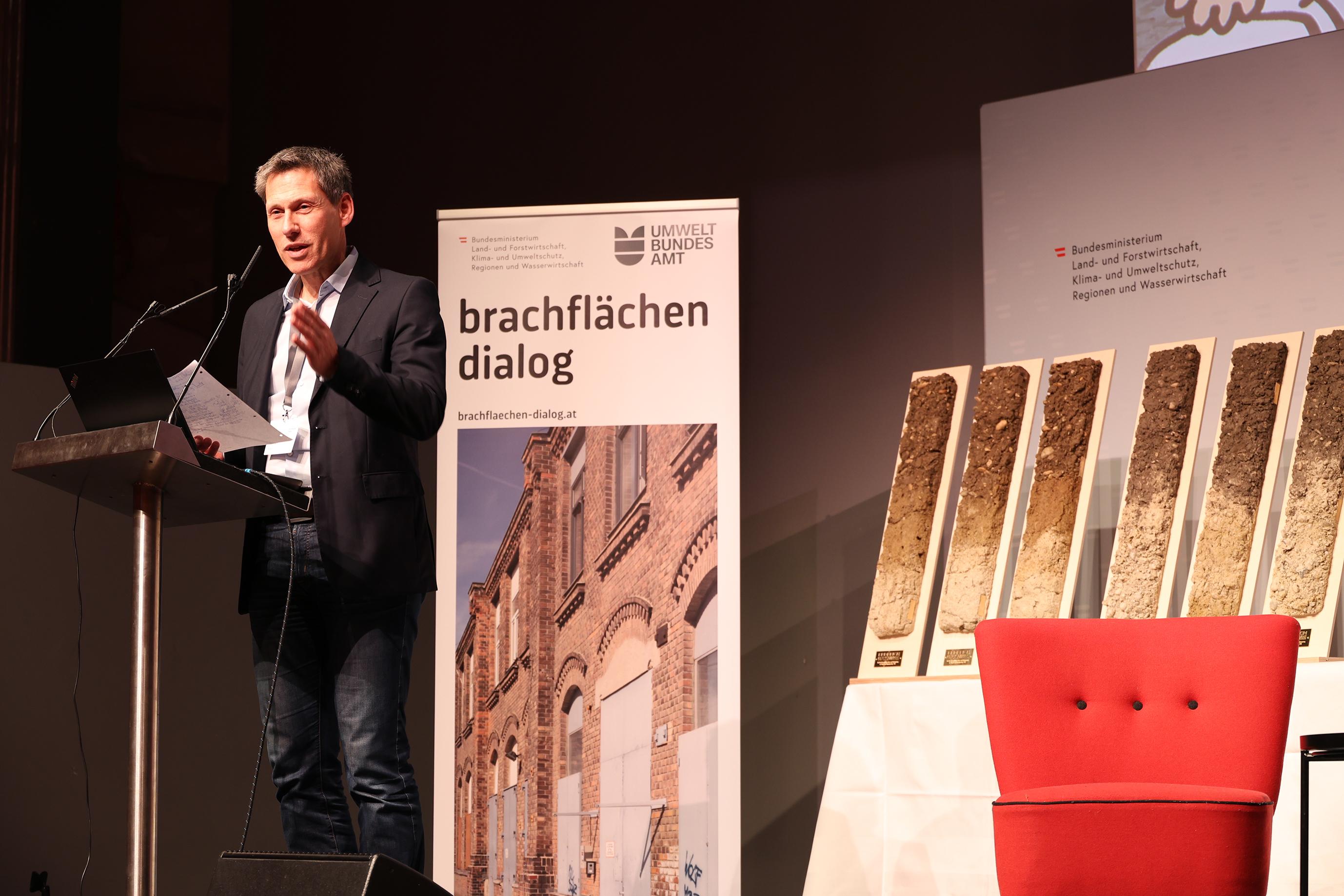 Christian Holzer, Sektionschef im BMLUK, eröffnete den Gipfel und betonte die zentrale Rolle von Kreislaufwirtschaft, Altlastensanierung und Flächenrecycling. Im Rückblick auf die vergangenen Jahre präsentierte das Team des Brachflächen-Dialogs eine Fülle von Aktivitäten.