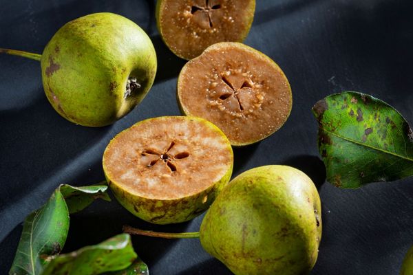 Unreife Früchte sind durch den hohen Polyphenolgehalt sehr adstringierend. Mit zunehmender Reife und Braunfärbung des Fruchtfleisches (Überreife) überwiegt der süße Anteil, der bittere Anteil tritt nahezu völlig zurück.