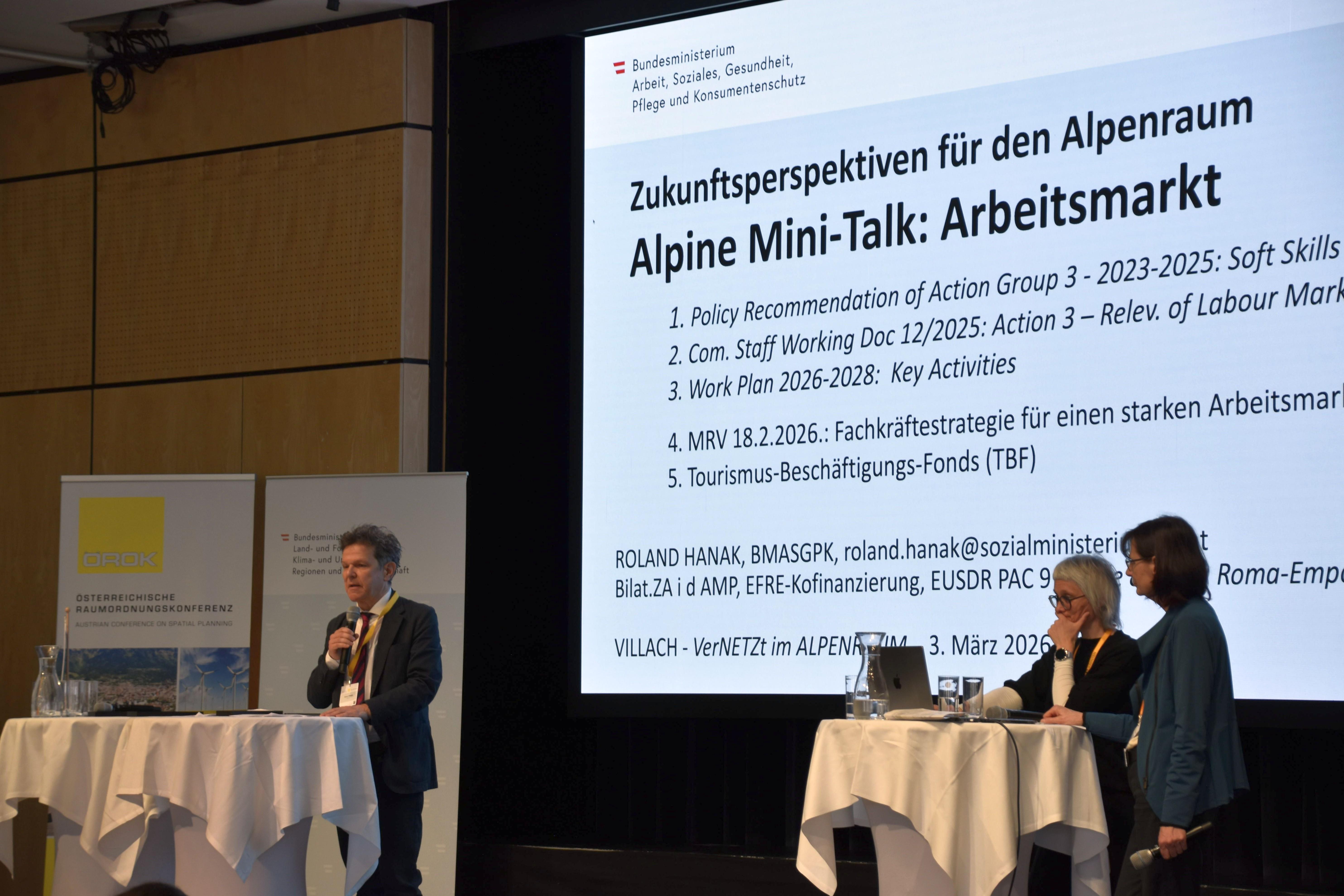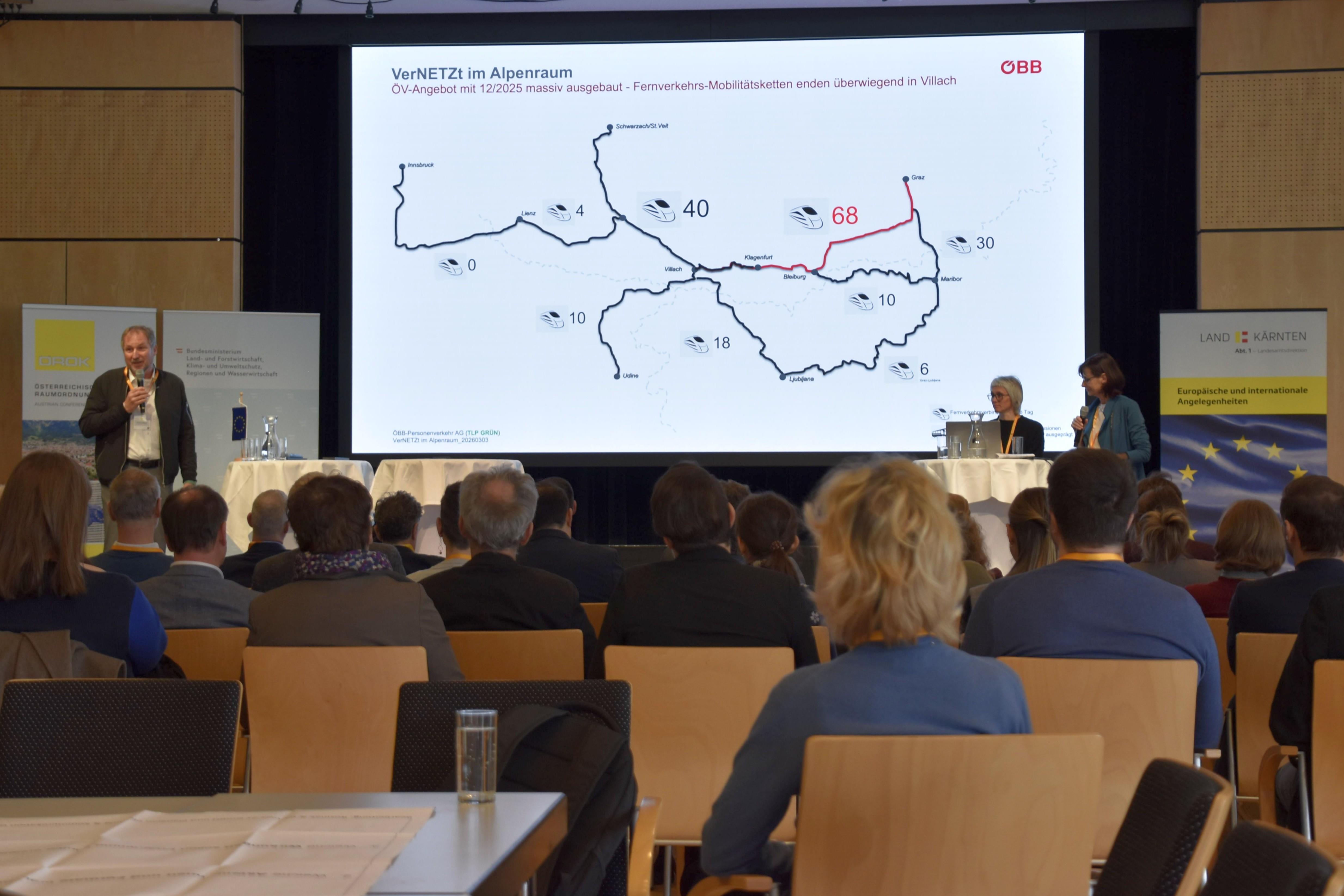 Unter dem Motto „Verbindung schaffen, Zukunft formen“ luden das BMLUK, das Land Kärnten und die ÖROK am 2. und 3. März 2026 zur Veranstaltung „Vernetzt im Alpenraum“ nach Villach ein. Vertreter:innen grenzüberschreitender EU- Projekte (Interreg) und deren Programmstellen, der EUSALP sowie der Alpenkonvention diskutierten Entwicklungen im Alpenraum und loteten neue Kooperationsmöglichkeiten aus.