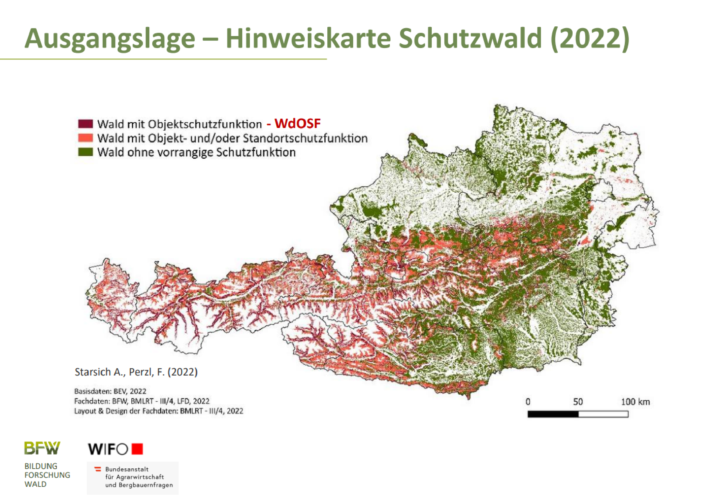 „Diese Hinweiskarte zeigt jene Schutzwaldgebiete in Österreich, die Siedlungen und Infrastruktur wie Häuser, Straßen und Bahngleise potenziell vor Naturgefahren schützen. Diese Schutzwaldkulisse umfasst etwa 16 Prozent der österreichischen Waldfläche. Daraus ergibt sich eine jährliche Wirtschaftsleistung im potenziell geschützten Raum von 14 Milliarden Euro. Das Bewusstsein für diese enorme volkswirtschaftliche Bedeutung der Schutzwirkung von Wäldern muss daher weiter gestärkt werden“, betont Bundesminister Norbert Totschnig.