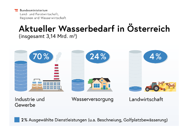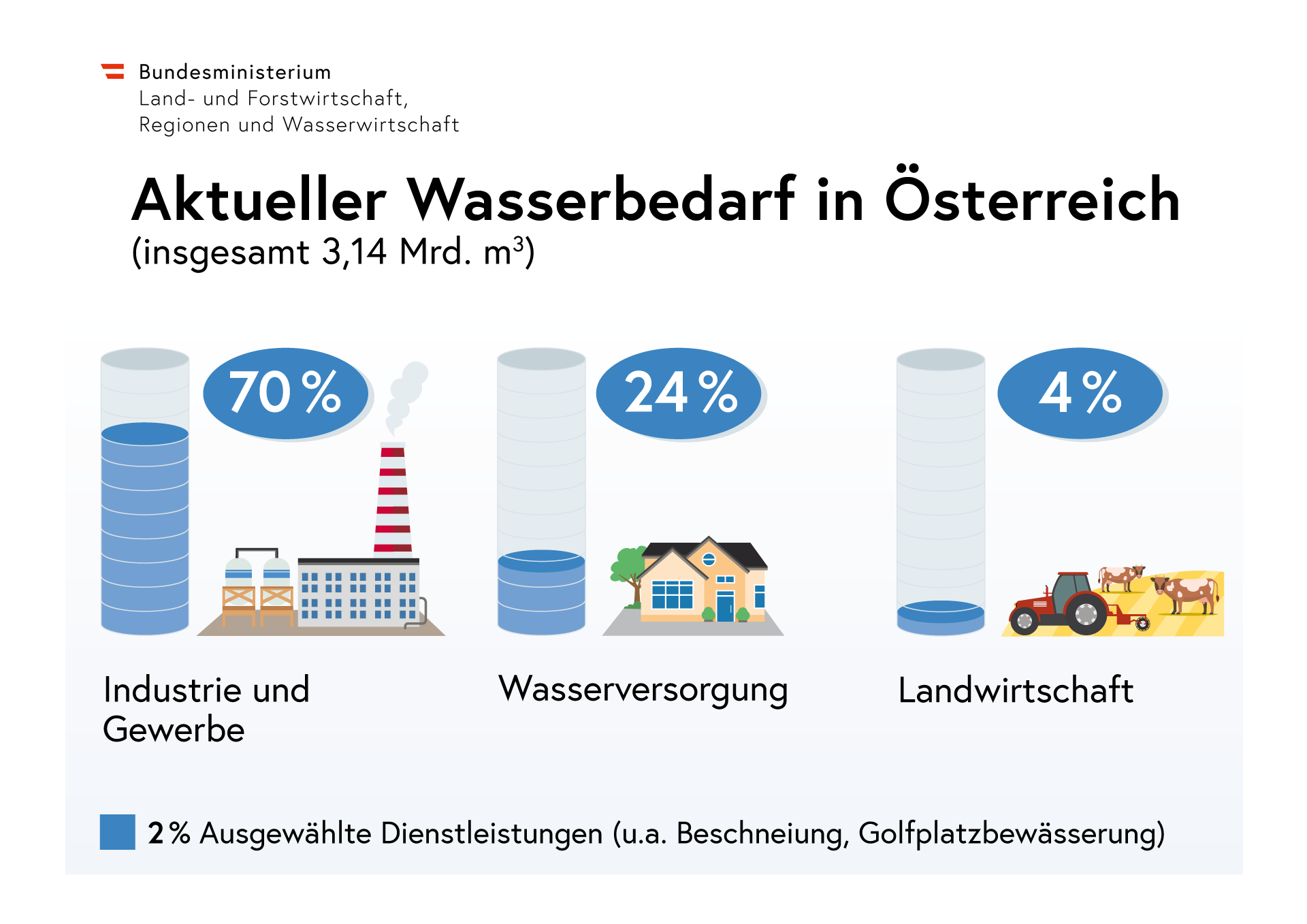 Der Trinkwassersicherungsplan setzt sich ausschließlich mit der Sicherstellung der Versorgung der Bevölkerung mit Trinkwasser auseinander. Die sonstigen Wassernutzungen, wie Landwirtschaft und Industrie, und die damit verbundenen mengenmäßigen Aspekte werden im Rahmen der „Zukunftsplattform Wasser“ mit allen Sektoren noch intensiv diskutiert werden.