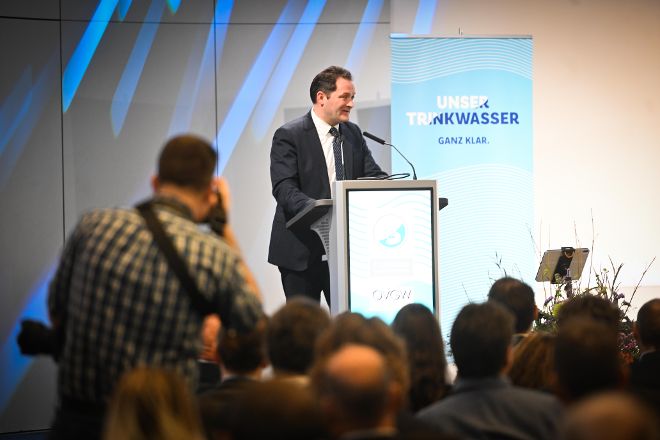 Bundesminister Norbert Totschnig vergewisserte in seiner Begrüßung, dass das Landwirtschaftsministerium Maßnahmen setzt, damit auch weiterhin die Versorgung der Bevölkerung mit erstklassigem Trinkwasser in Österreich bestens abgesichert bleibt. So konnten alleine im Jahre 2023 über 1000 Projekte der Trinkwasserversorgung gefördert werden. Diese Unterstützung der Gemeinden ist vor allem durch eine Sondertranche Trinkwasser mit zusätzlichen 100 Millionen an Fördermitteln möglich.